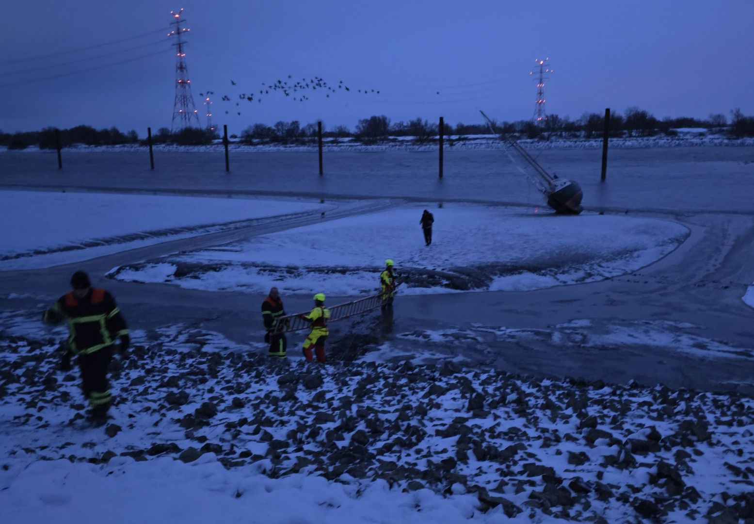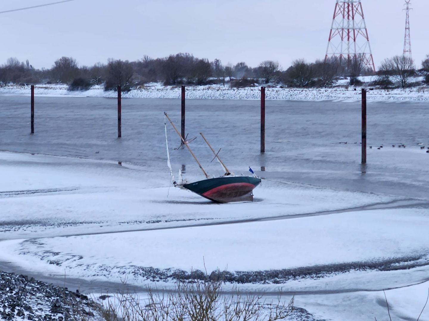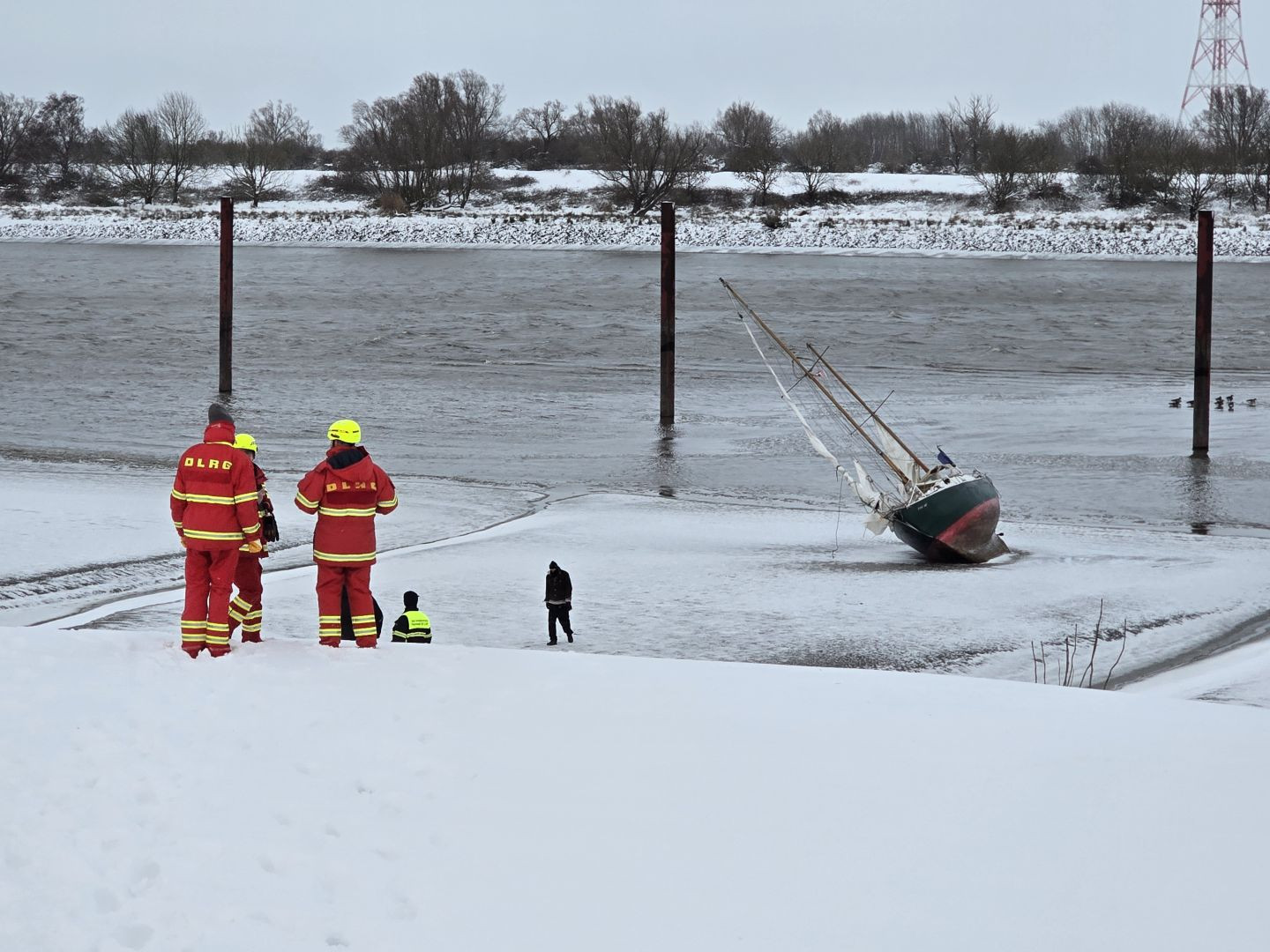 Am heutigen Freitag, den 09.01 wurden die ca. 45 Einsatzkräfte der DLRG Horneburg/Altes Land, der DLRG Buxtehude sowie der Feuerwehren aus Borstel und Grünendeich zum Gewerbepark Grünendeich alarmiert. Dort war ein Segelboot auf einer Schlickbank gestrandet und es war unklar ob noch Personen an Bord sind.