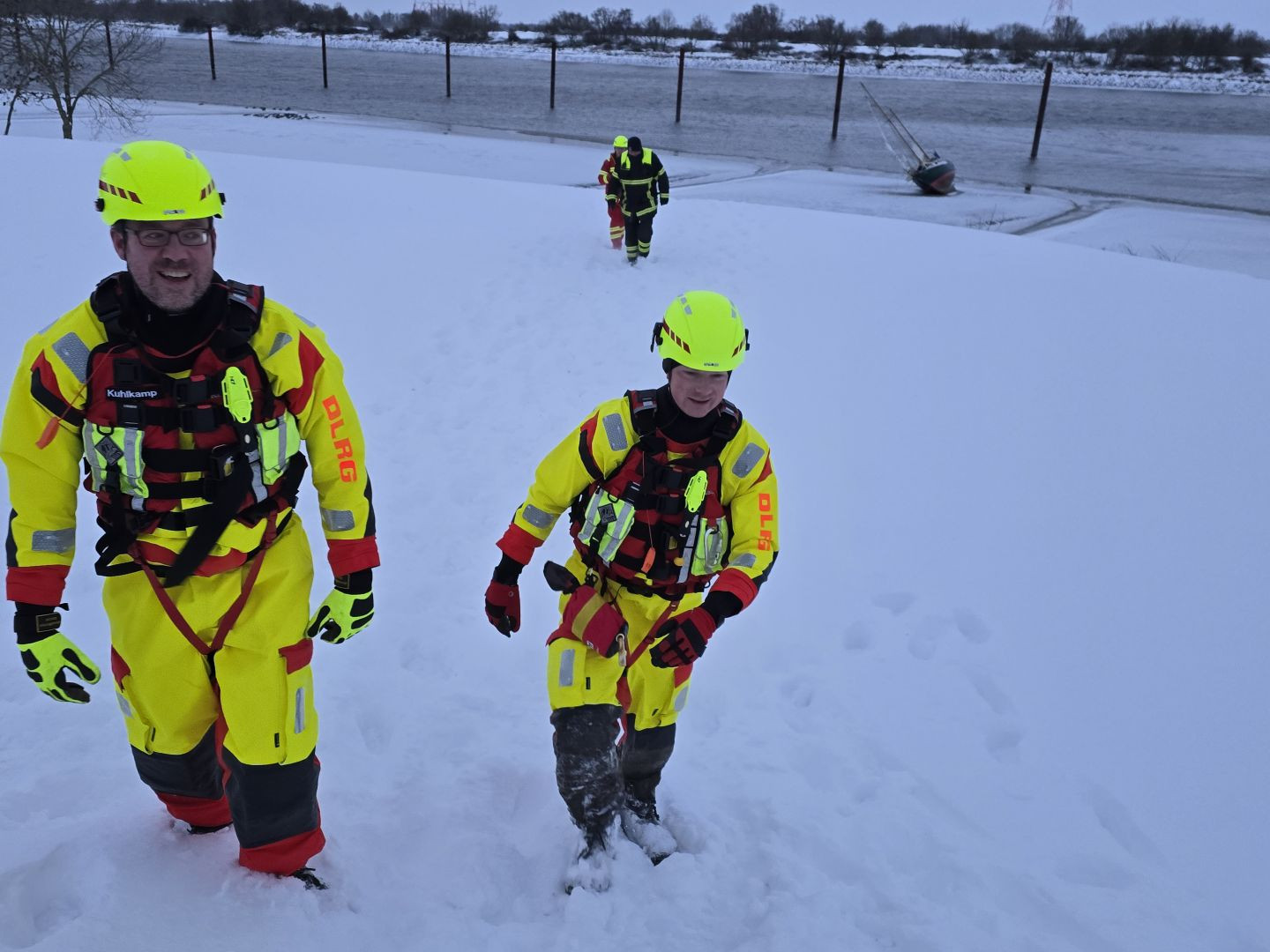 Nach Rücksprache mit der zuständigen Hamburger Wasserschutzpolizei wurde der Mann aufgefordert sein Schiff gegen Wegtreiben bei Hochwasser zu sichern und wurde dann durch die Helfer an Land begleitet.