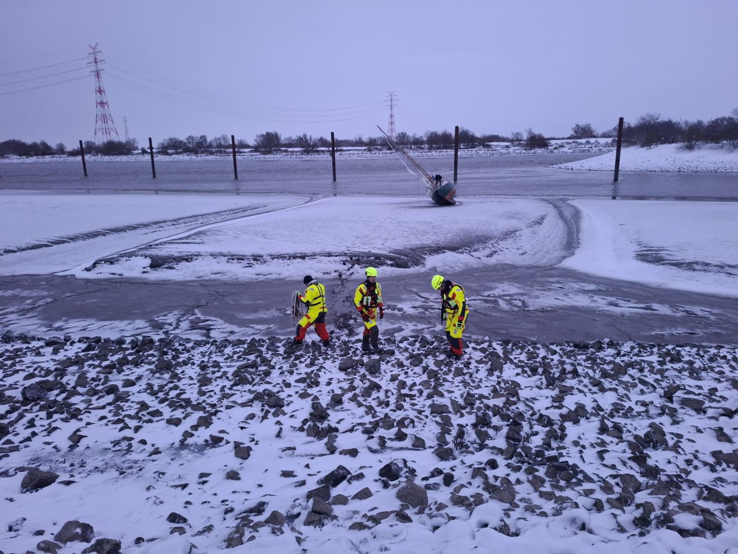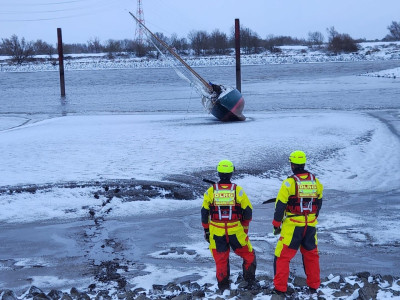 Strömungsretter begaben sich in ihren Spezialanzügen zum Havaristen und nahmen mit dem 46-jährigen Eigner auf. Dieser war auf der Fahrt von Hamburg nach Finkenwerder durch den starken Sturm von seiner Route abgekommen und schließlich in der Lühesander Nebenelbe gestrandet.